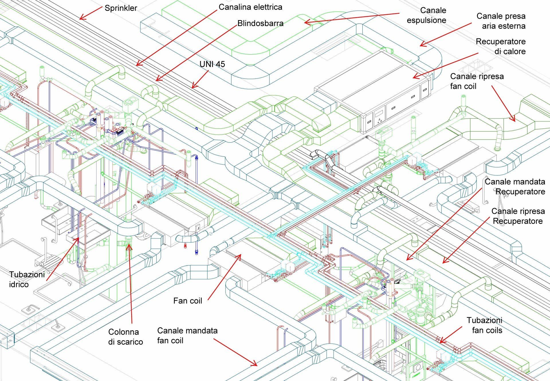 Il modello BIM degli impianti è stato sviluppato con il Software Autodesk Revit.